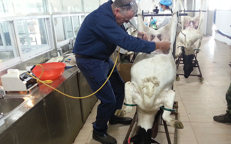 2018.04.27 南非著名種羊定級專家雷蒙德來我公司進行種羊選育定級