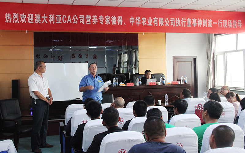 熱烈歡迎澳大利亞CA公司營養(yǎng)專家彼得、中華農(nóng)業(yè)有限公司執(zhí)行董事鐘樹波一行現(xiàn)場指導