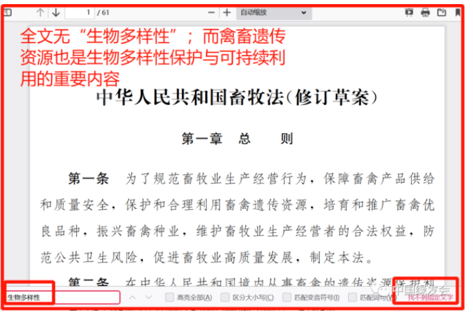 :正在征求意見的《中華人民共和國畜牧法(修訂草案)》中,全文沒有“生物多樣性”。而禽畜遺傳資源也是生物多樣性的重要組成部分。2019年2月份聯(lián)合國糧農(nóng)組織《世界糧食和農(nóng)業(yè)生物多樣性狀況》的報告警告稱:全球家畜生產(chǎn)基于約40個家畜品種,其中少數(shù)幾個品種就提供了絕大多數(shù)的肉類、乳品和蛋類產(chǎn)品。在全球7745個本地家畜品種(僅存在于一個國家的品種)中,有26%瀕臨滅絕。因此,我們認為,在畜牧法中不能不涉及到“生物多樣性”這個概念。