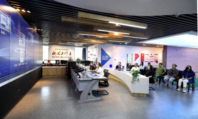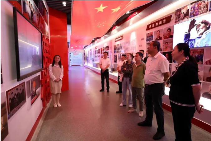 于長洪一行首先參觀了習(xí)近平新時代中國特色社會主義思想實踐基地,觀看了都貴瑪老人的照片資料等,加深了對“人民楷?!倍假F瑪先進事跡的了解,深切體會到老人那種超越地域界線無私奉獻的民族大愛精神。隨后于長洪一行又參觀了四子王旗融媒體中心的中央廚房、多功能演播室等,全面細致了解四子王旗融媒體中心的運營情況。