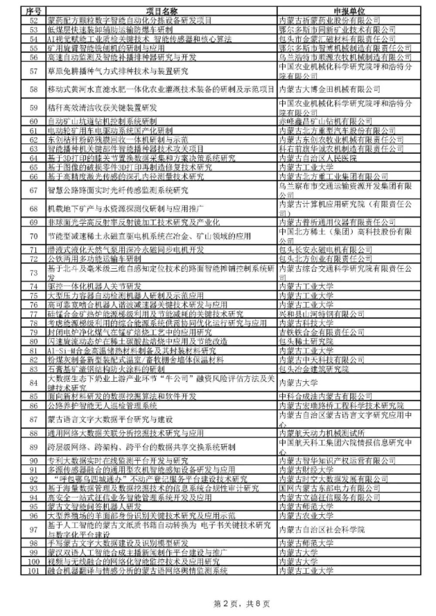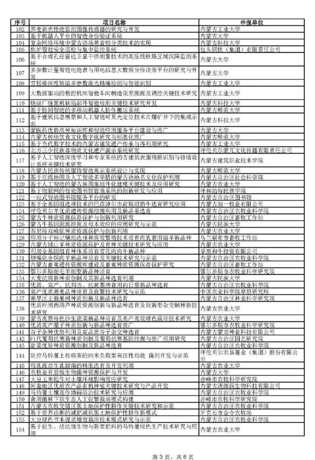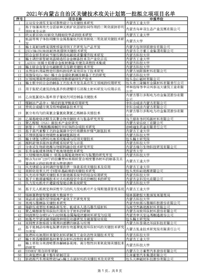 附件:2021年內(nèi)蒙古自治區(qū)關(guān)鍵技術(shù)攻關(guān)計(jì)劃第一批擬立項(xiàng)項(xiàng)目名單